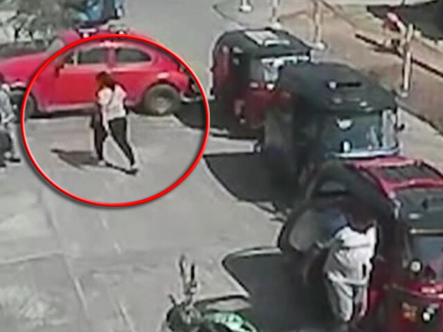 Como se observa la mujer que bajó de una mototaxi y caminó con tranquilidad por la vereda, cuando un sujeto descendió de una moto lineal sin placa, la persiguió y tras acorralarla le disparó en la pierna, llevándose consigo 250 mil soles, para luego rápidamente huir junto a su cómplice que lo esperaba metros más allá .