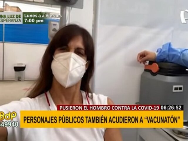 Miles de peruanos como la conductora de televisión Sandra Plevisani, la actriz Vanessa Saba, el periodista Jaime Chincha, acudieron a inmunizarse este fin de semana en la segunda Vacunatón.