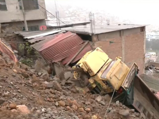 Una familia se salvó de morir tras la caída de un volquete sobre el techo de su vivienda prefabricada. El accidente ocurrió a la medianoche en el cerro Catalina Huanca, en la zona 3, en el distrito de El Agustino.
