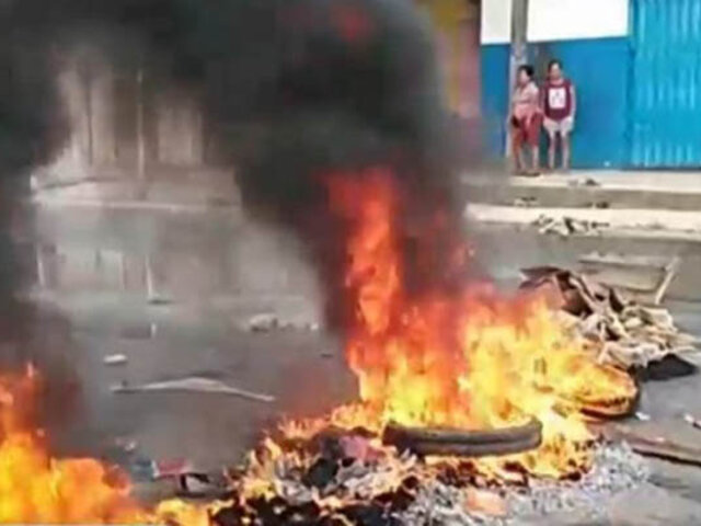 Los manifestantes quemaron llantas y arbustos exigiendo al alcalde Gerson Lecca que solucione sus problemas, pues tras las lluvias el agua se estanca en sus casas produciéndose un gran aniego.